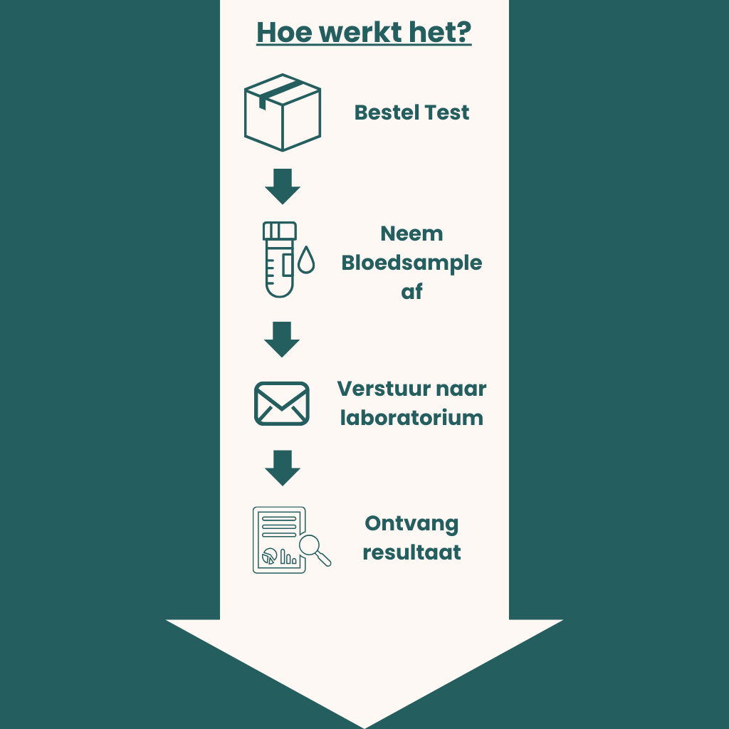 Je ontvangt een zelftest van onze partner mijnlabtest.nl. Na ontvangst activeer je de test online met de code in de verpakking.